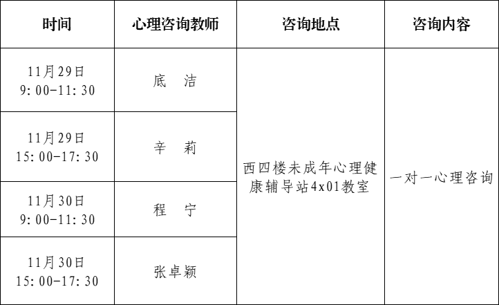 为落实立德树人根本任务,切实做好全市中小学心理健康工作,为广大青少年学生及家长朋友们提供优质的心理健康与家庭教育服务,市教育局在包头市未成年人心理辅导站设立包头市中小学“周末公益咨询室”,免费向全市中小学生、教师及家长提供心理健康服务。