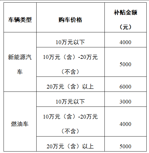 本次补贴活动以机动车销售统一发票为依据,按车辆类型和购车价格分档补贴,具体标准如下: