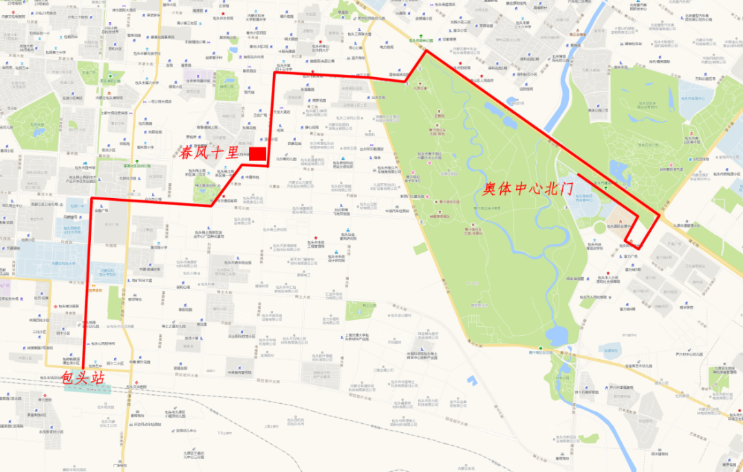 3.途经站点:包头站、一号楼、核工业二O八、内蒙古科技大学、钢铁职业技术学院、稀土国际大酒店、市建委、包头市交通局、高新一中、春风十里主题街区、幸福南路与青工南路口、干部教育中心、友谊大街与幸福南路口、市教育局、友谊大街与自由南路口、友谊大街东段、赛罕塔拉城中草原、市公安局、奥体中心体育馆