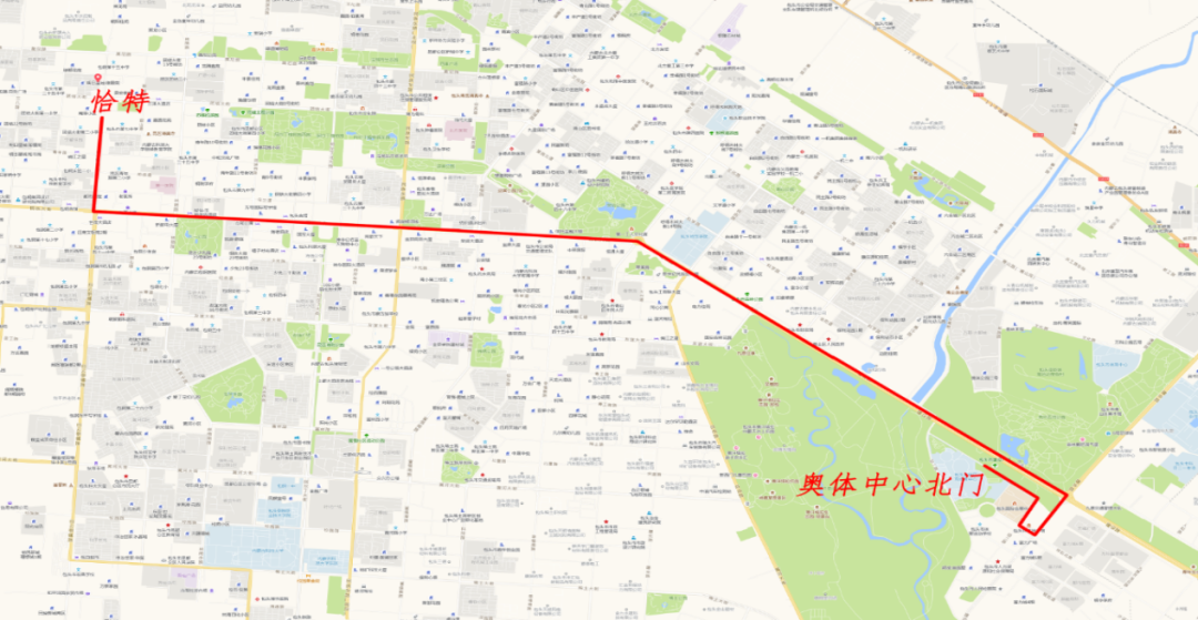 2.线路走向:东站——南门外大街——环城路——西脑包大街——巴彦塔拉大街——黄河大街——健康路——沙河街——奥林匹克大街——剧院路——奥体中心体育馆