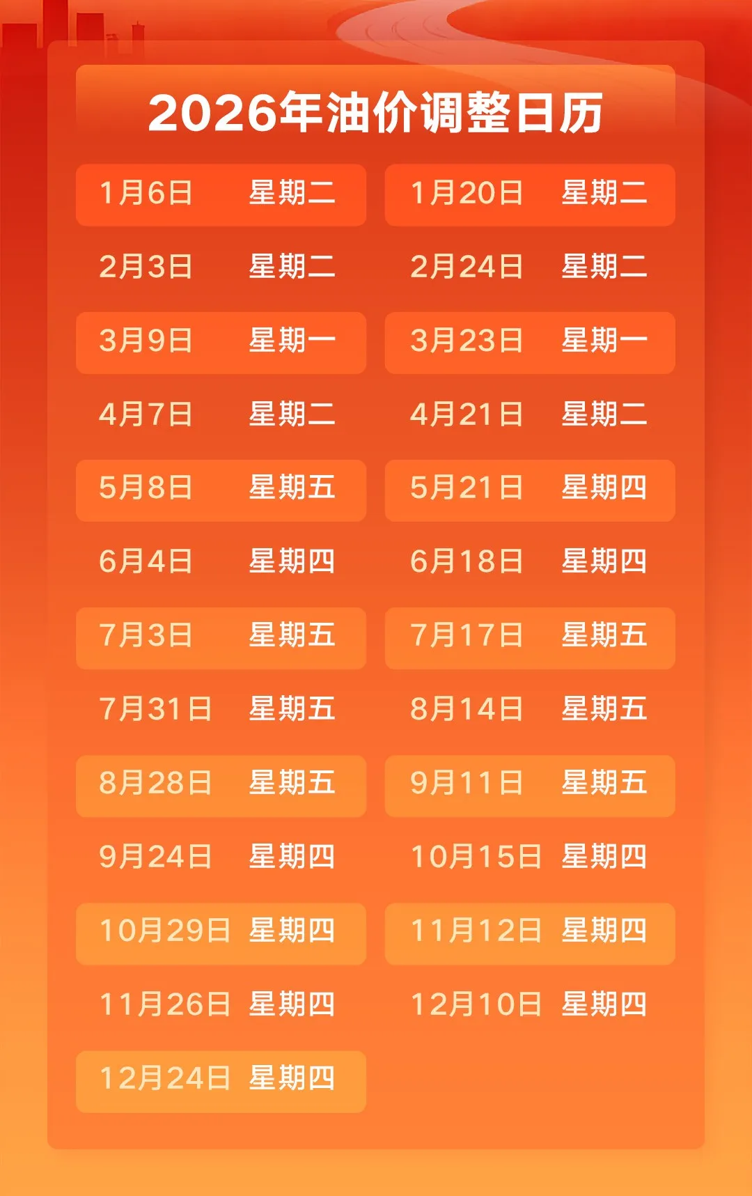 2026年首次油价调整时间为