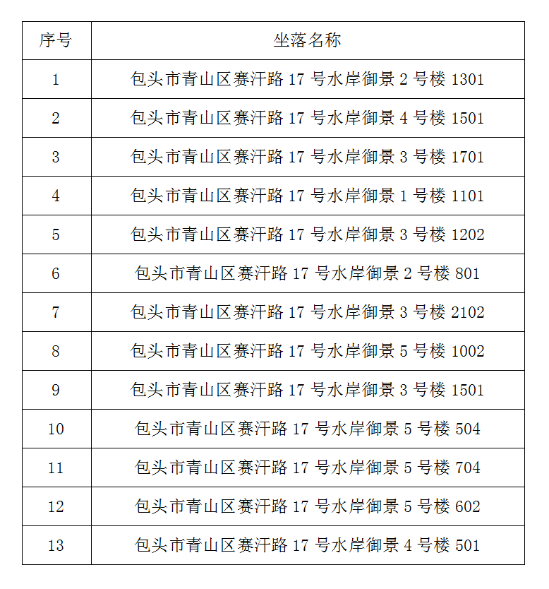 该项目的首次登记工作已顺利完成,具备办理不动产权证条件,已结清购房款的业主名单现予以公布(详见附表)。公告范围内的业主,可持相关材料,自行前往包头市不动产登记中心青山受理大厅办理不动产权证书登记手续。