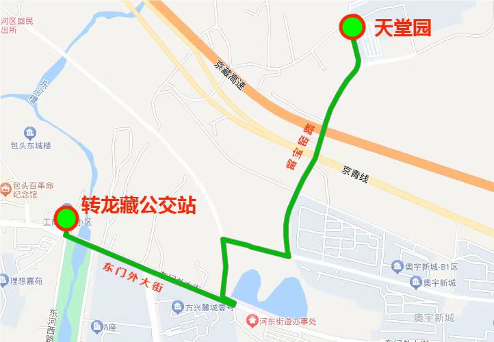 转龙藏(原18路公交站)一东门外大街一奥宇新城一留宝窑大街一天堂园公墓