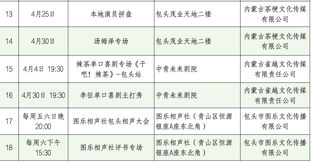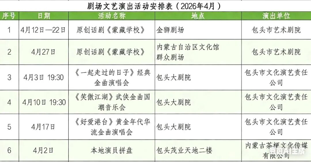 4月的包头演出真的太太太丰富了!不管你是话剧党、演唱会迷还是脱口秀爱好者,都能找到自己的快乐!快挑一个喜欢的,约上小伙伴一起去嗨吧~