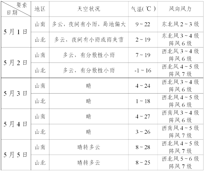 1.“五一”假期包头市多大风天气,气温起伏频繁,公众外出旅行需注意冷暖变化,做好健康防护;