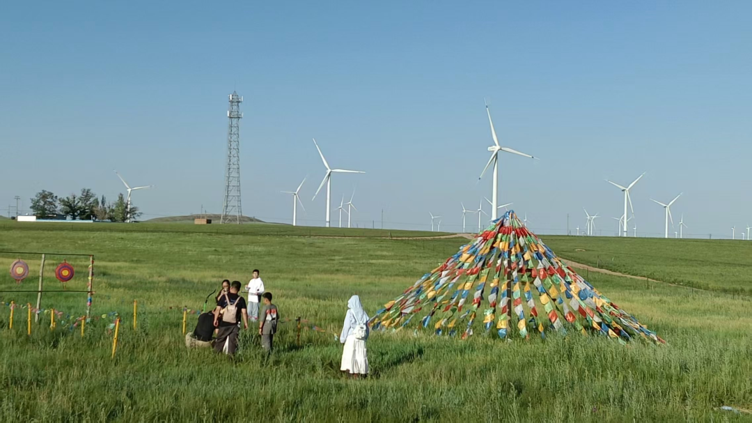 这里的山,不是江南的温婉叠翠,而是铁骨铮铮的赭红与苍灰,岩层里藏着地球深处的密码,每一道褶皱都镌刻着远古海洋的记忆;这里的云,似被草原长风揉碎的棉絮,时而漫过矿坑的轮廓,为工业脊梁披上柔纱,时而悬停在敖包上空,与经幡共舞出天地的辽阔。
