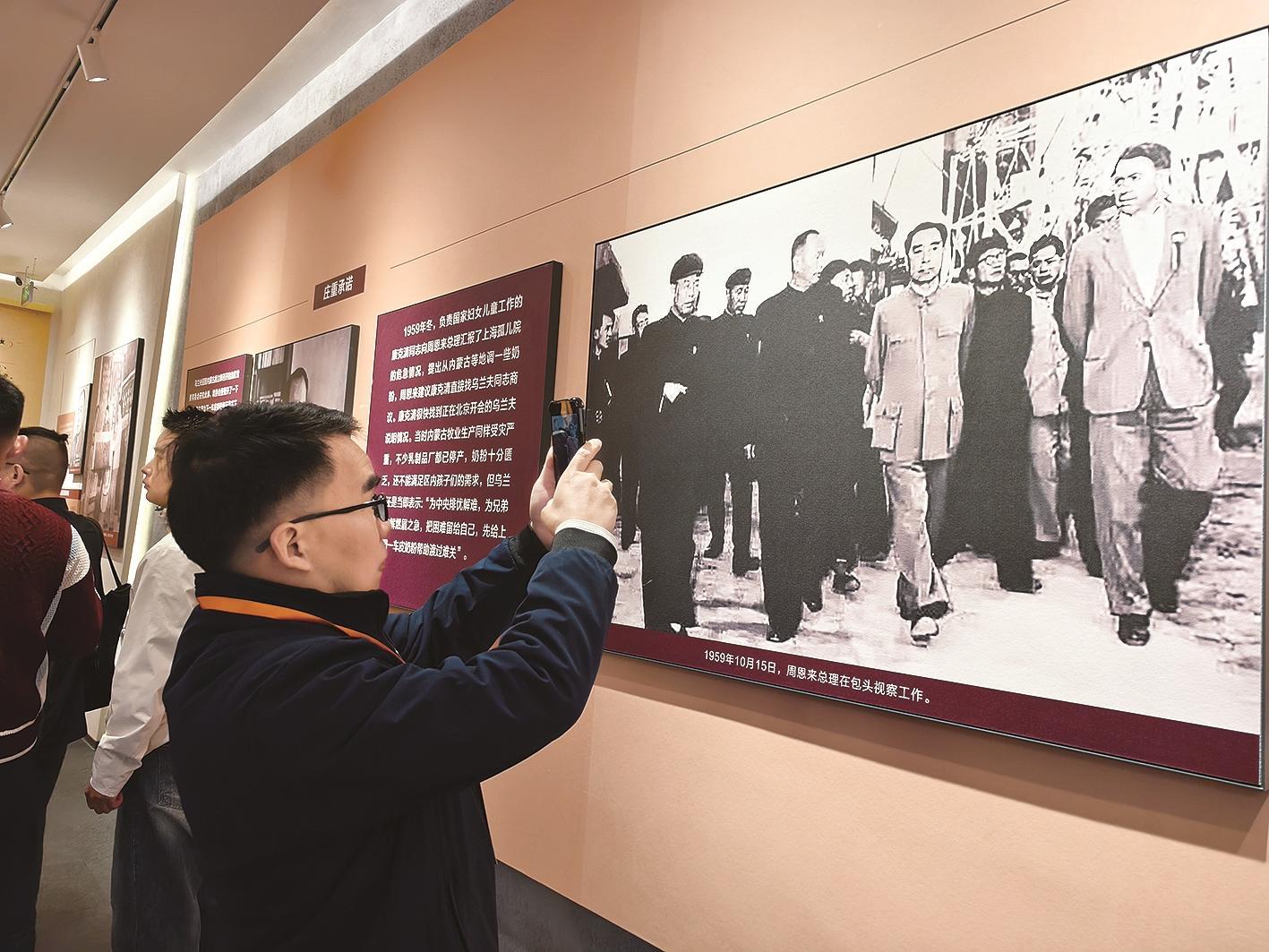 在石榴花开主题园“三千孤儿入内蒙”主题展馆内参观。