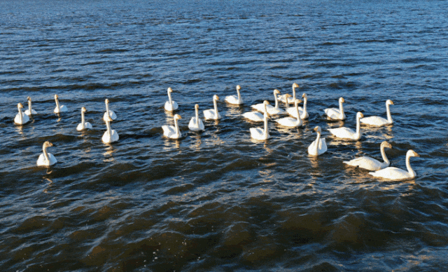 清晨6:30-8:30:鹈鹕觅食、小天鹅游水,鸟儿都活跃,好拍又好看
