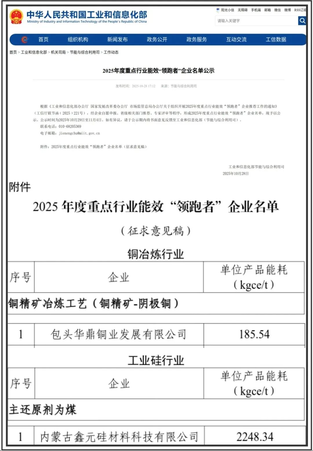 包头两企业入选工信部2025年度重点行业能效“领跑者”名单