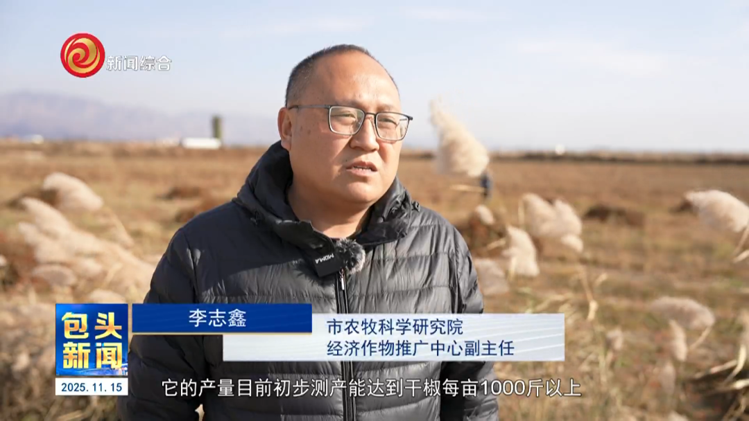 市农牧科学研究院经济作物推广中心副主任 李志鑫:它的产量目前初步测产能达到干椒每亩1000斤以上,和其他的耐盐碱的经济作物也好,或者糖料作物也好,还有大田作物也好,它的整体效益要高出一大截。