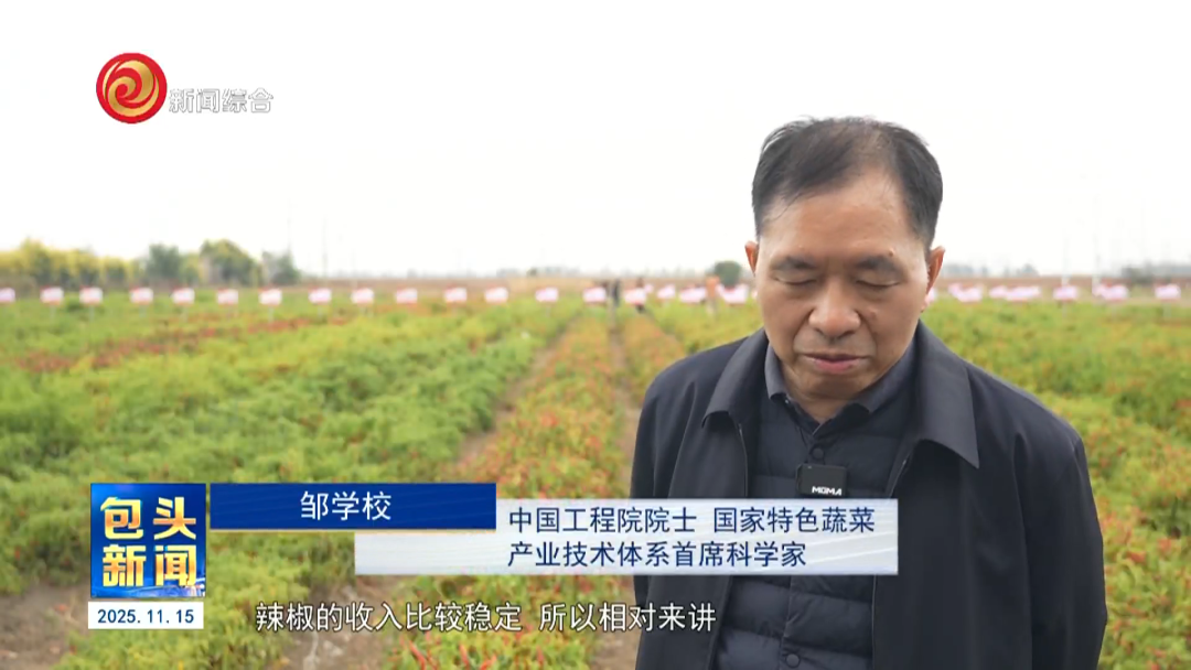 中国工程院院士 国家特色蔬菜产业技术体系首席科学家 邹学校:辣椒的收入比较稳定,所以相对来讲,通过在盐碱地里种植辣椒,应该来说是包头的一个方向。