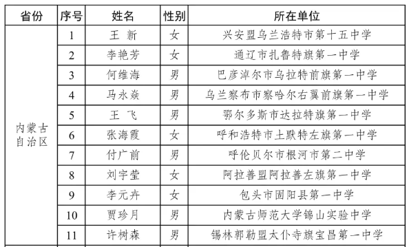 近日,教育部印发《关于公布全国县域普通高中头雁教师岗位计划人选的通知》,公布首批全国县域普通高中头雁教师岗位计划入选教师600人。