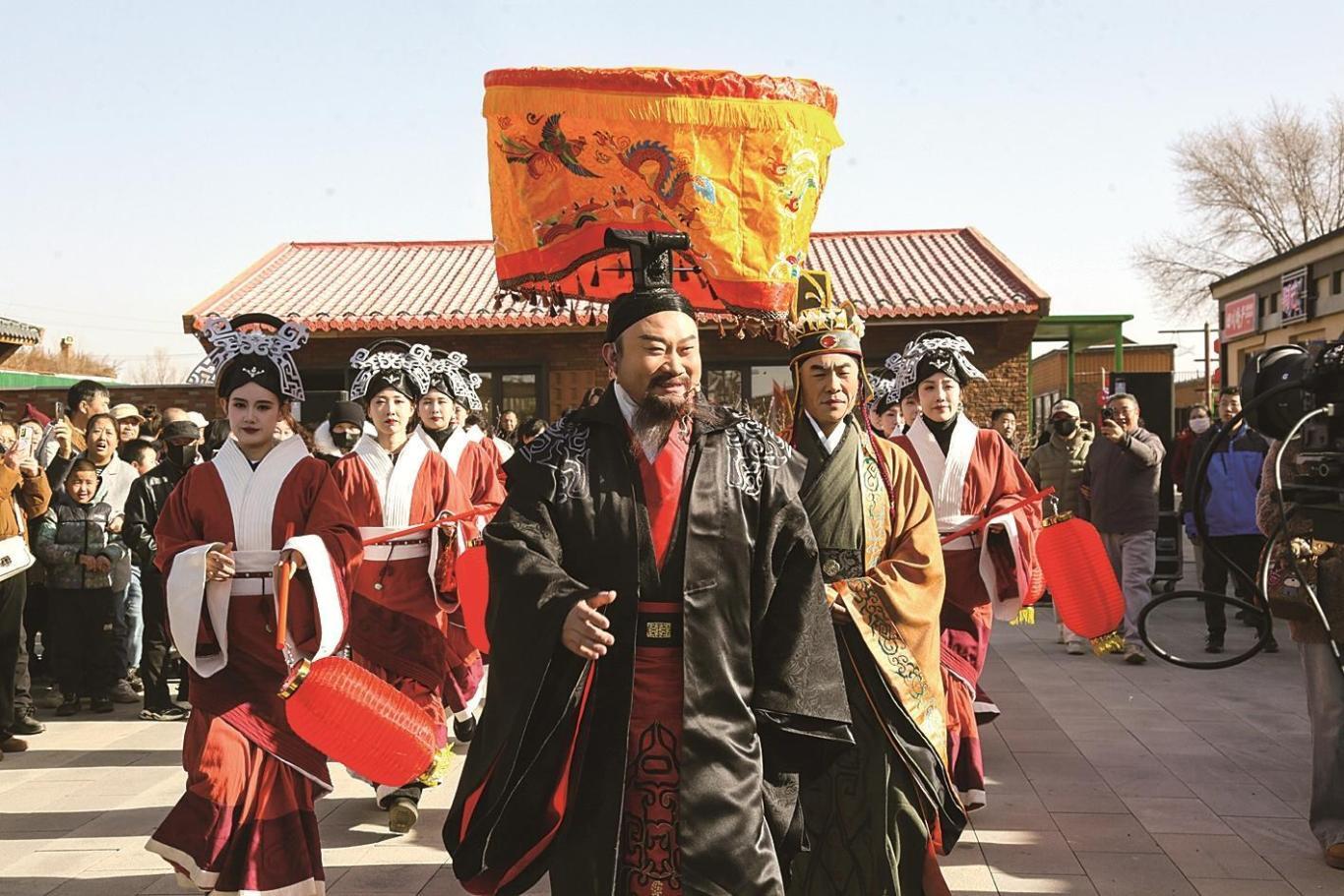 除了多元赏凌视角,观凌季更是打造了贯穿全天的狂欢体验。“大河·千人共舞”震撼开场,千人队伍变换队形摆出“天下黄河第一凌”字样,尽显黄河母亲的磅礴气势;《禹王赐福·黄河安澜》大型情景展演庄重上演,融合歌舞、戏剧、国乐等多种艺术形式,再现先民祭拜黄河、感恩母亲河的传统场景,让游客感受包头对黄河文脉的传承与敬畏;《西口情》《哥哥走西口》等沉浸式演出轮番登场,将老包头走西口文化、土默特婚礼民俗与现代潮流相融合,演员与游客欢乐互动,让冬日寒意被热闹与暖意驱散;南北商业街的杀猪烩菜、手扒肉、烧麦、焙子、炖黄河鱼等地道包头美食,一站式满足了不同游客的味蕾需求。