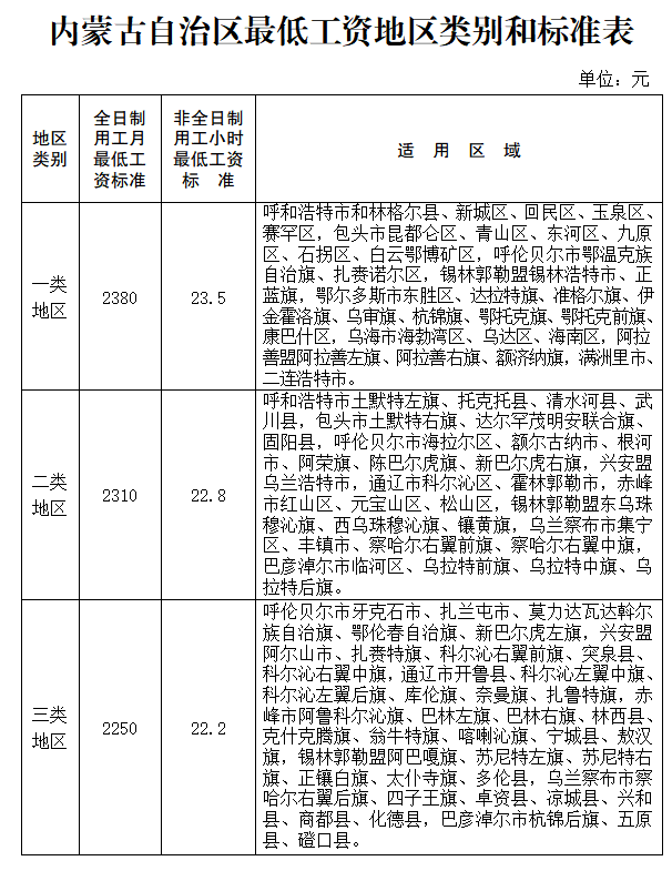 内蒙古自治区人民政府办公厅发布关于调整自治区最低工资标准的通知。详情