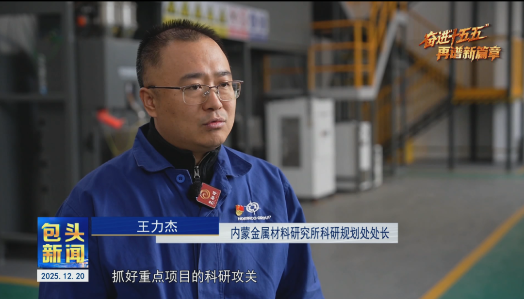 内蒙金属材料研究所科研规划处处长 王力杰:抓好重点项目的科研攻关,全力推进国家级创新平台的建设,加强企地合作和产学研合作,引进京津冀、长三角的先进技术成果,与包头市重点产业领域结合,把科技创新与产业创新深度融合,推进包头市老工业基地绿色转型升级。