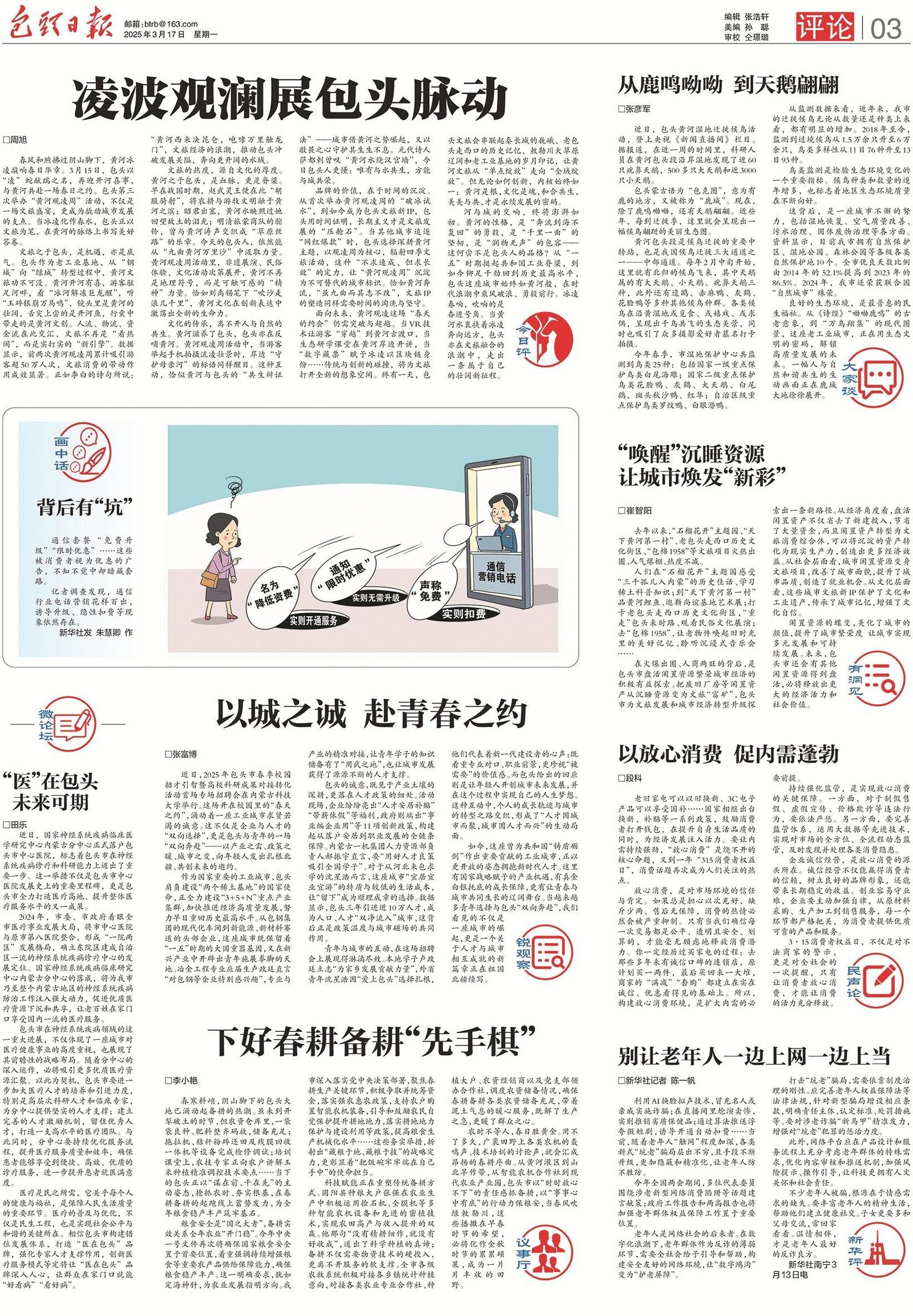 2025年,包头日报开设评论版,聚焦包头市产业发展、城市更新、民生关切和文旅亮点等热点话题,与广大读者共话包头的变化。从家门口的充电桩安装到老旧小区更新改造、从闲置资产盘活到全国赛事举办、从“一元钱”服务到“一把手”走进12345热线中心……2025年的包头,既有暖到心田的城市微光,也有激昂奋进的发展动能。岁末年初,包头日报特精选评论11篇,从多个角度与您一同回顾不平凡的2025。