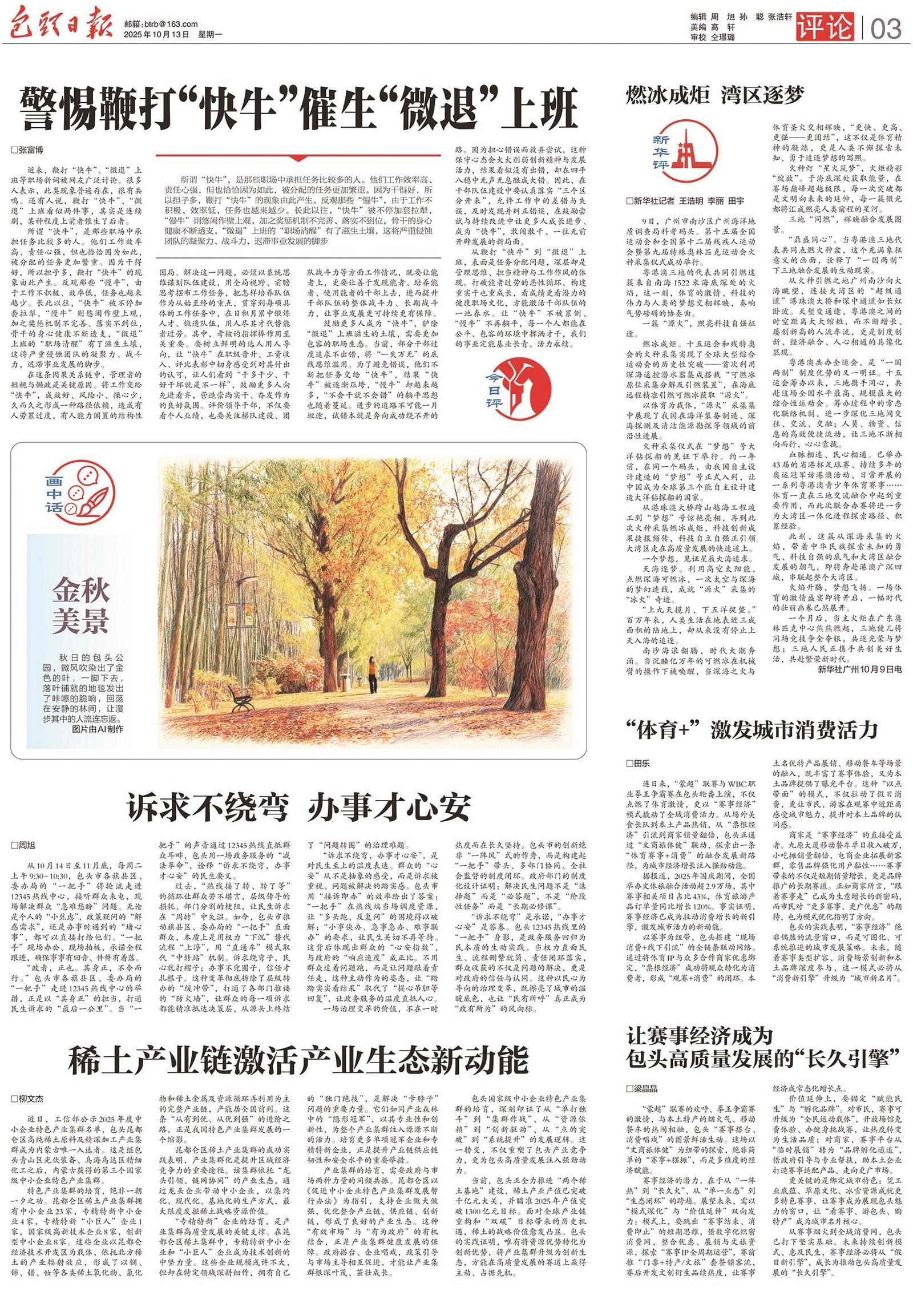 “诉求不绕弯”是承诺,“办事才心安”是答卷。包头12345热线里的“一把手”身影,是政务服务回归为民本质的生动实践。当权力直面民生、流程删繁就简、责任闭环落实,群众收获的不仅是问题的解决,更是对政府的信任与认同。这种以民心为导向的治理变革,既擦亮了城市的温暖底色,也让“民有所呼”真正成为“政有所为”的风向标。(2025年10月13日 3版)