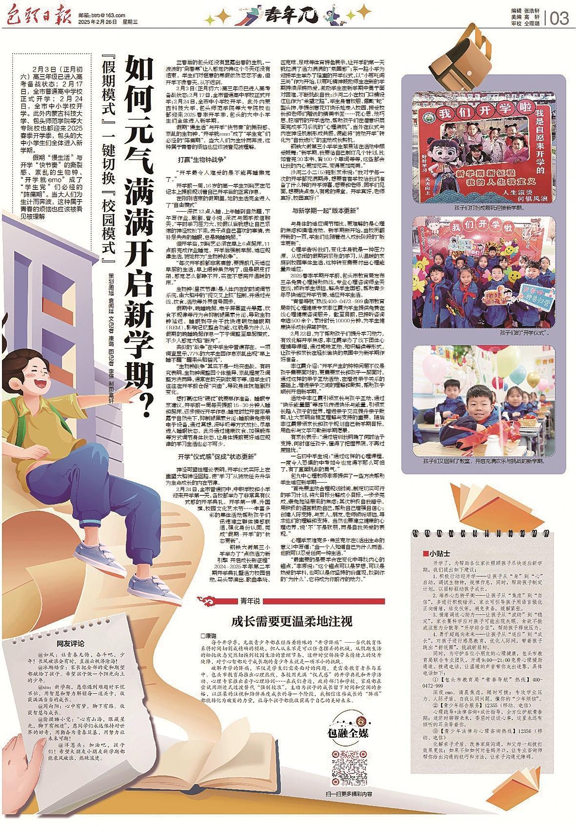 《“假期模式”一键切换“校园模式” 如何“元气满满”迎战新学期?》2月26日3版