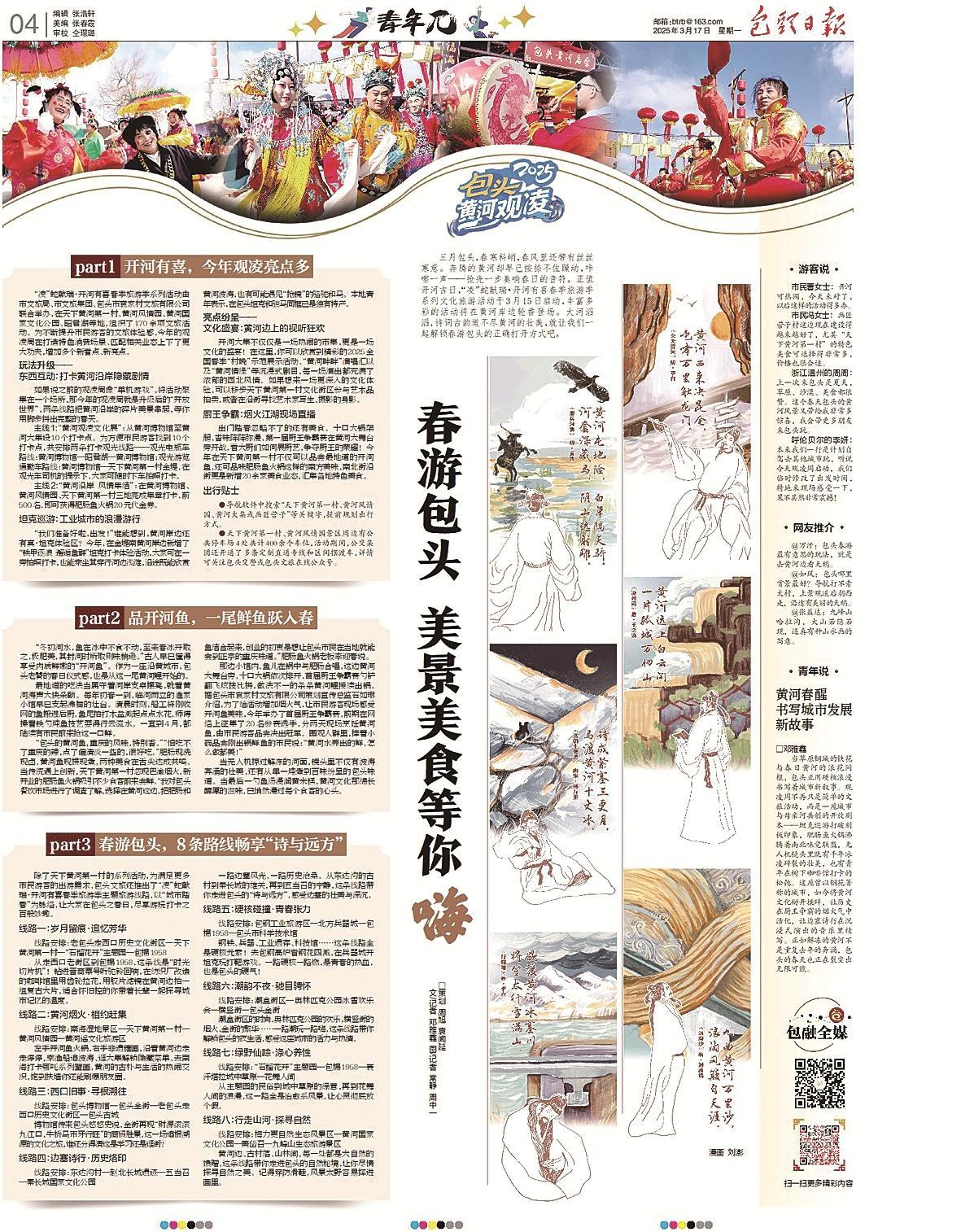 春天,黄河流凌携冰雪消融的诗意而来,开河鱼的鲜美唤醒沉睡的味蕾;夏天,军工工业游点燃红色激情,钢铁与机械的轰鸣诉说着工业传奇;秋天,草原与城中湿地铺展金色画卷,秋高气爽间尽览自然馈赠;冬天,乡村大集的喧闹与杀猪节的欢腾,将年味酿得愈发醇厚。