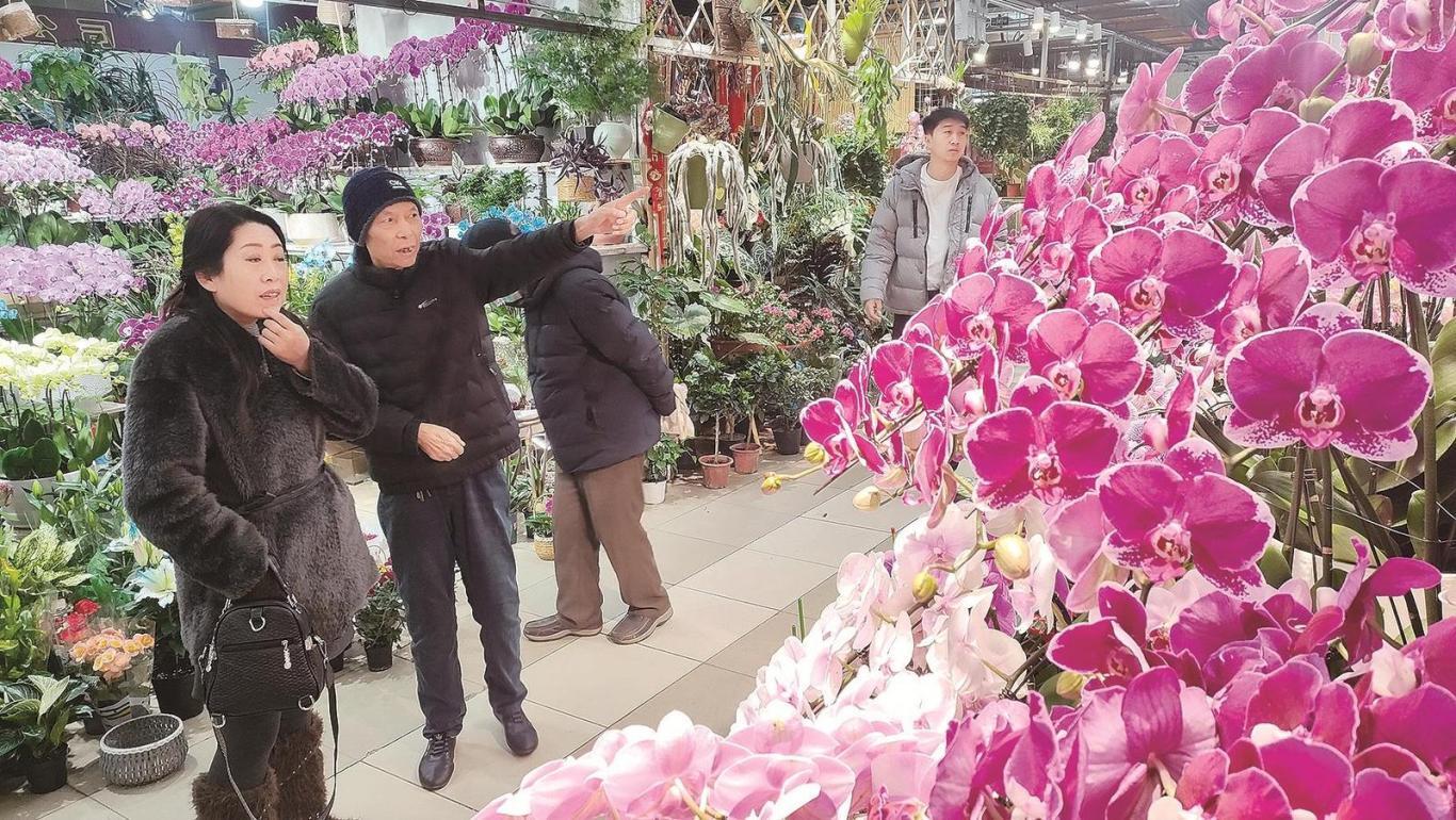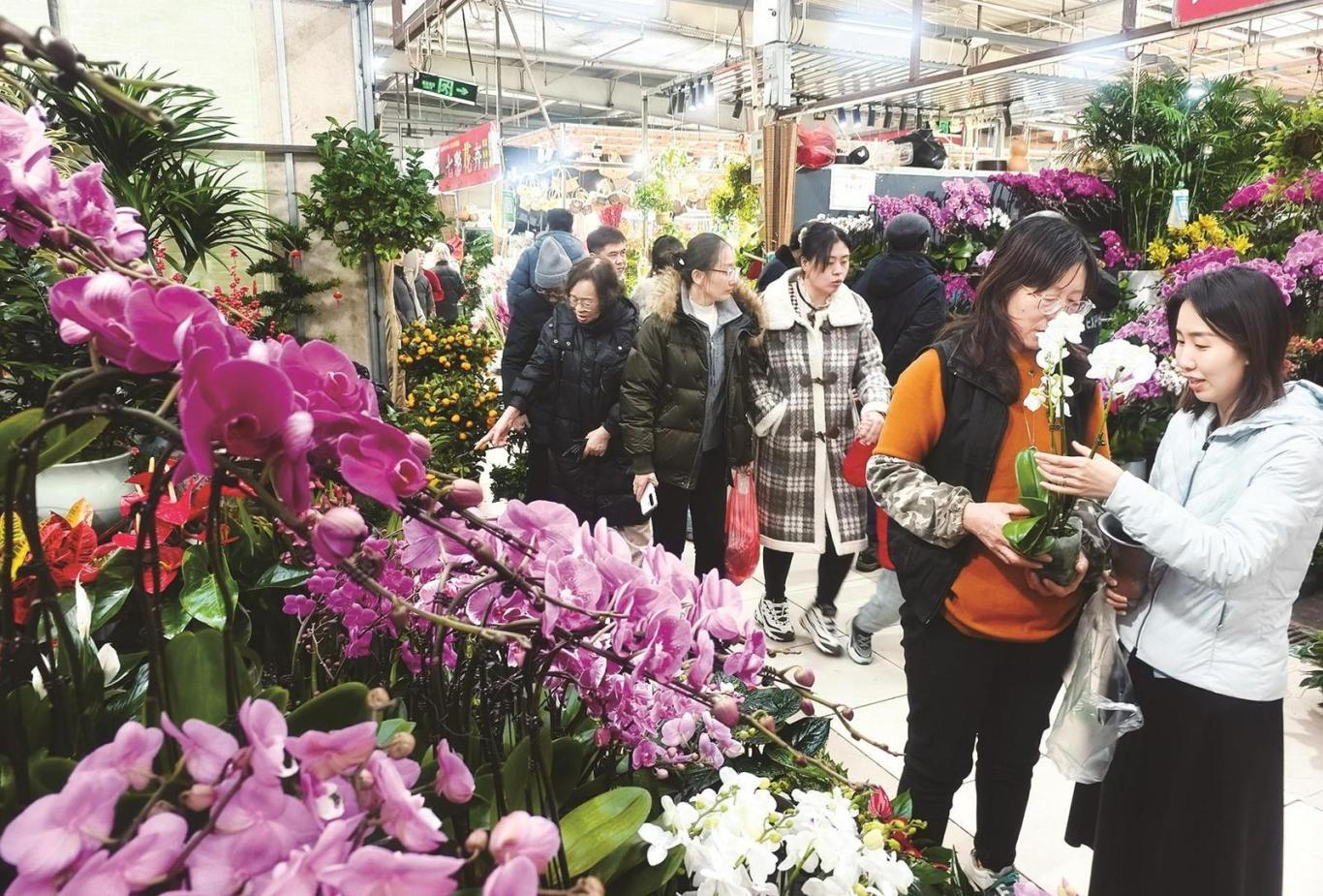 新年伊始,鲜花市场人气爆棚,各色鲜花争奇斗艳,市民们忙着选购鲜花装点新年,处处洋溢着喜庆的节日氛围。