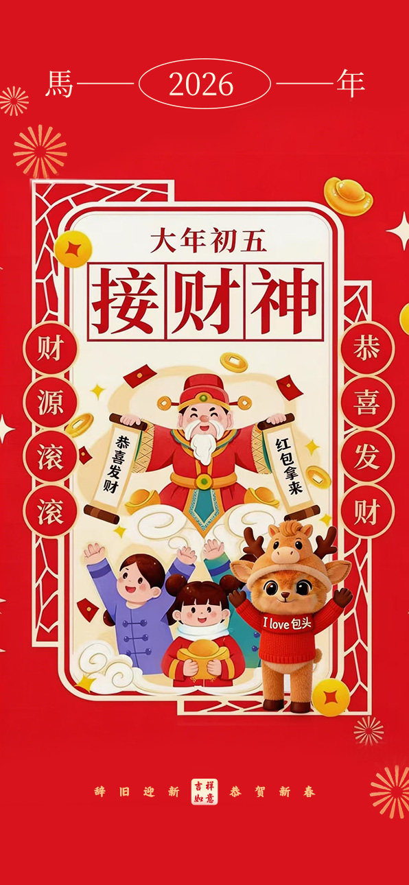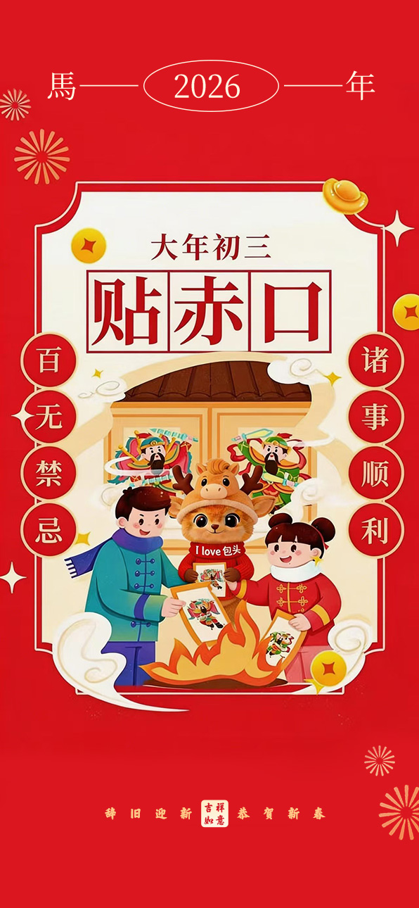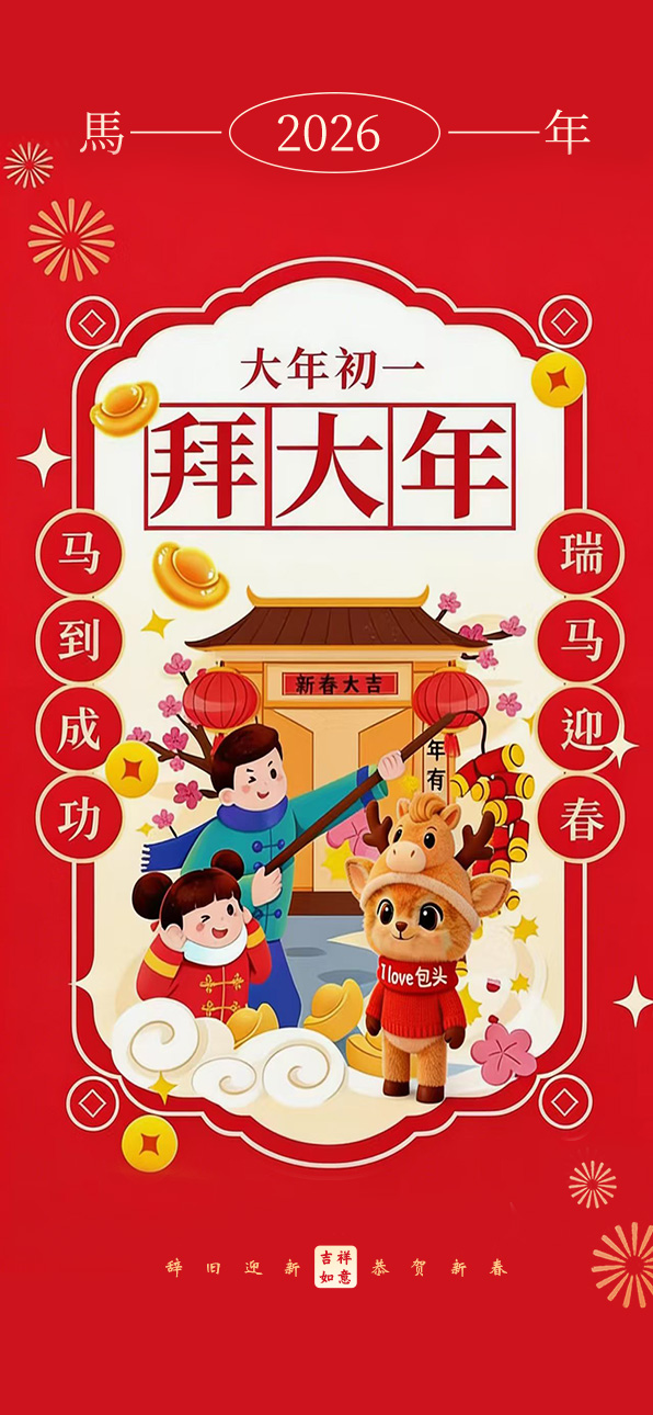 “一夜连双岁,五更分两年”。大年初一,大人们早早起来煮饺子,孩子们争先恐后吃饺子,吃到硬币的手舞足蹈,没吃到的垂头丧气。吃过早饭,孩子们穿戴整齐,大人们也把新衣服换上,挨家逐户拜年,孩子们更是不管不顾,只要碰到熟人就跪下磕头,大人们就从衣袋中掏出崭新的钱给孩子们,包头俗语中有“二八小子过大年,又吃好的又挣钱”的说法。初二凌晨,人们把院门和家门全部打开,垒一堆柴旺火,在孩子们的鞭炮声中,大人们口中念念有词:“大年初二福门开,财神爷爷请进来。”初三要把几天来积存的垃圾一次性倒掉,当地人称“送穷媳妇”。初四,灶神休假归来,家家户户把几日的剩饭做成“大杂烩”,告诉灶神勤俭节约是我们的美德。初五,俗称“破五”,意思是破除初一到初五的禁忌,比如不能用针,不能打碎东西等。初五以后,人们开始筹划正月十五闹元宵的事情,选几位德高望重,有号召力的人组成“社”或“会”,领头人叫“会首”,他们挨家逐户起份子钱,俗称“平安钱”,大户人家通常出钱较多,然后张榜公布。