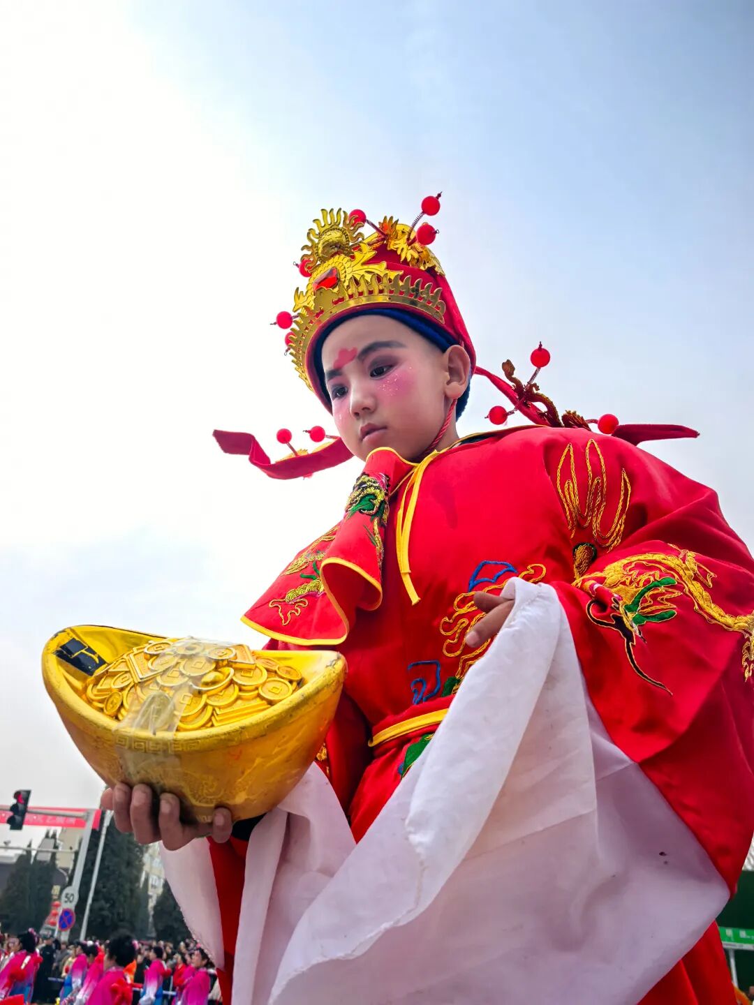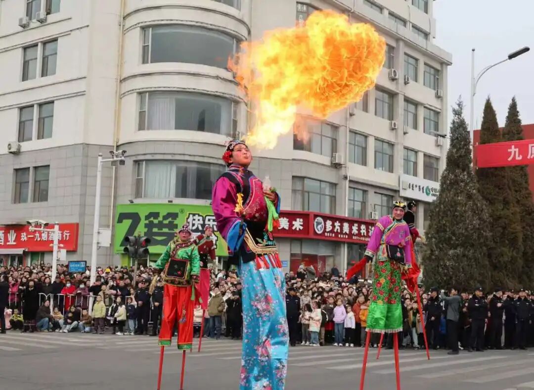 社火队伍中那些头戴面具、身着奇异服饰的表演者,在锣鼓声中挥舞彩绸,走街串巷、舞动跳跃,显然还残存着远古驱傩的影子。许多老人们至今依然坚信,社火队伍走过的地方,邪祟就会被驱离,新的一年必将平安顺遂。这种承自远古的文化基因,早已融入了老包头元宵社火的每一个细节之中。