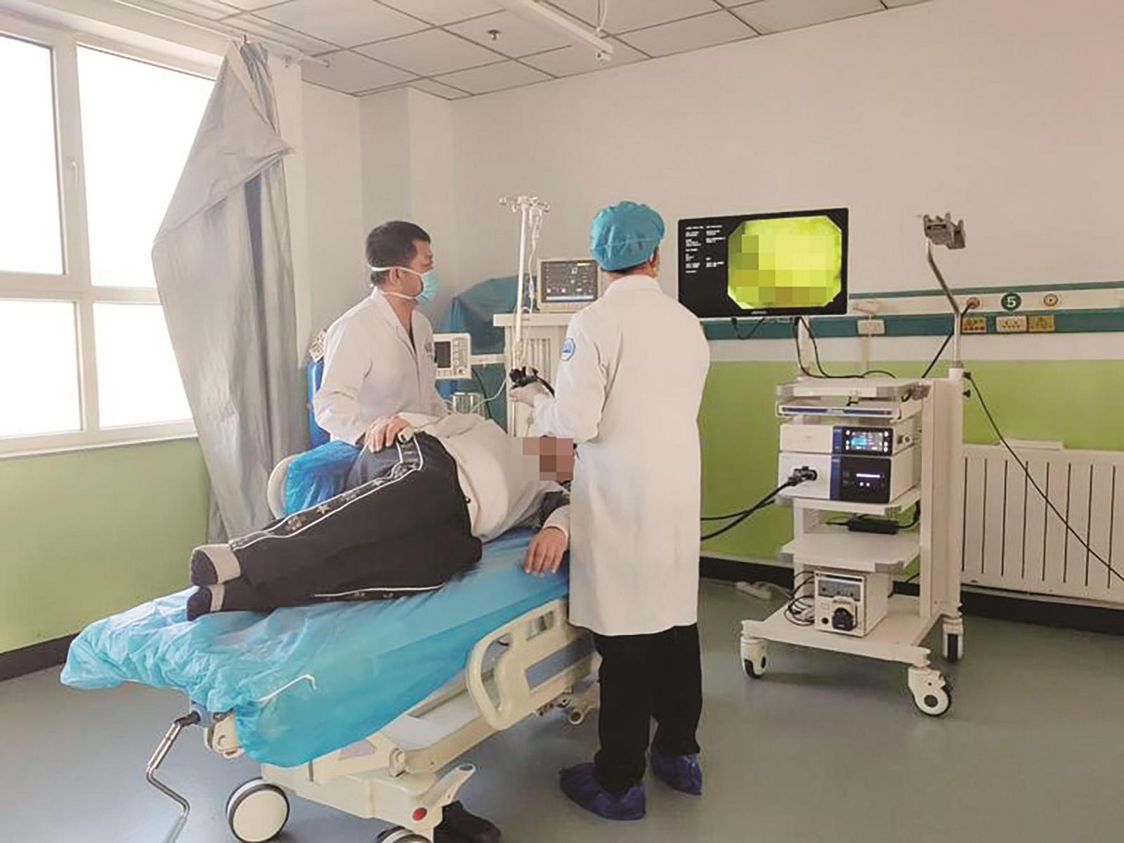 市中心医院医生在土右旗医院为患者做胃镜。