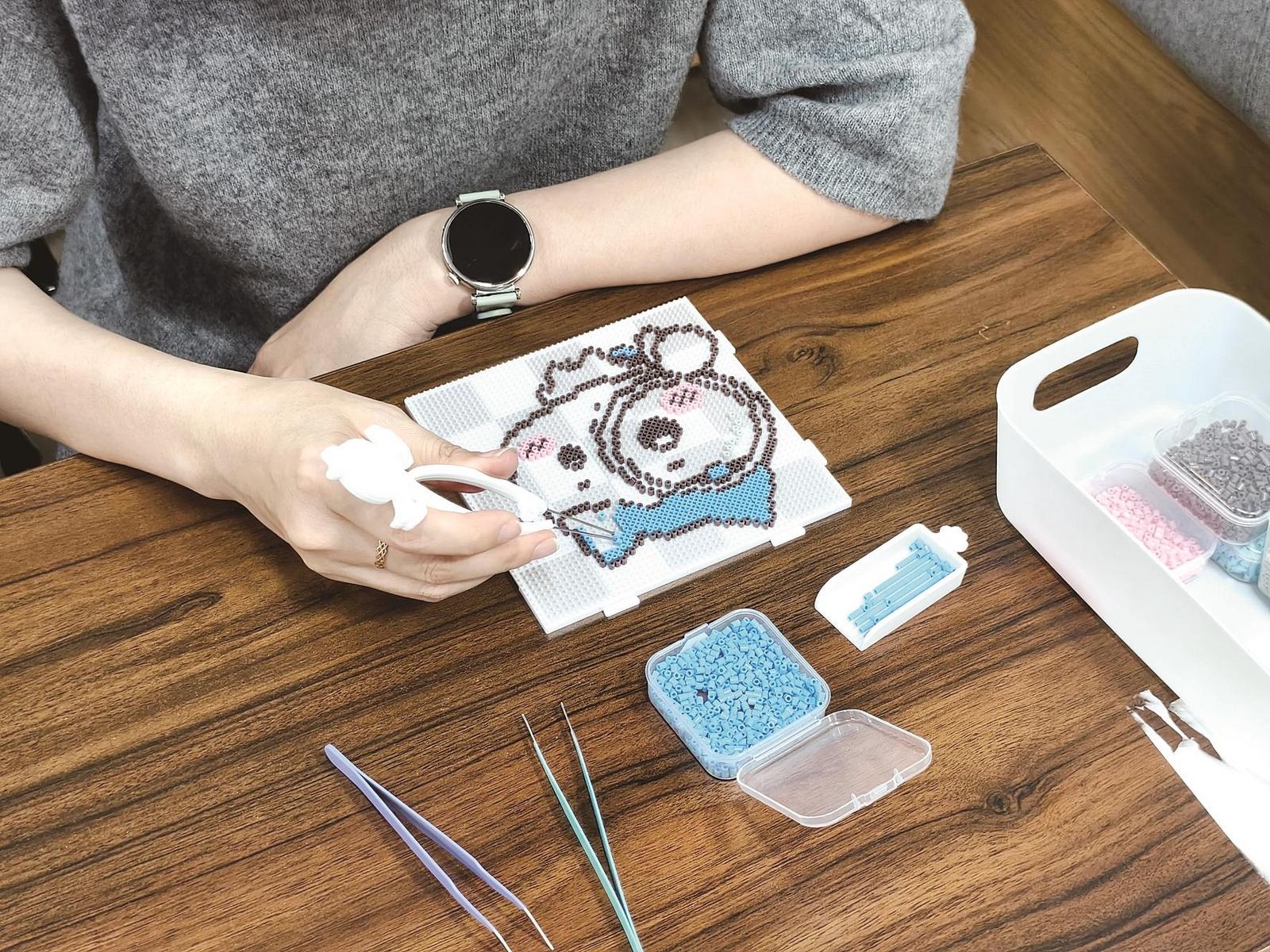 以往坐在书桌前学习,不到两小时就坐立不安;埋头处理案头工作,也常常盼着早点下班,可如今不少人低头拼豆几小时都浑然不觉,直到天色彻底暗下来才惊觉时间过得飞快。一颗颗微小的彩色豆子,用镊子细心拼接、错落排列,再经高温熨烫定型,便可成为造型精致的挂件、可爱的冰箱贴……如今,许多年轻人在学习工作之余,迷上了这种色彩丰富、解压又好玩的小手作。