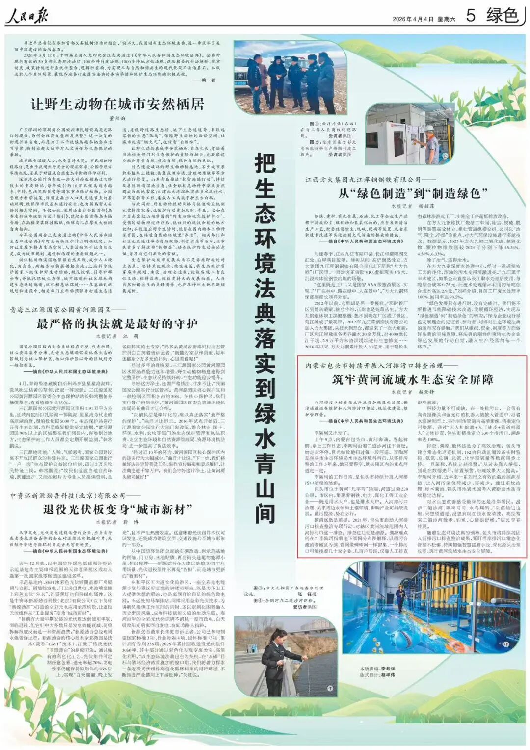 随着生态环境法典的颁布,包头市将持续巩固入河排污口排查整治成果,紧盯沿岸排污口常态化管控不松懈,持续加强智慧监测手段、深化源头治理攻坚,筑牢黄河流域水生态安全屏障。