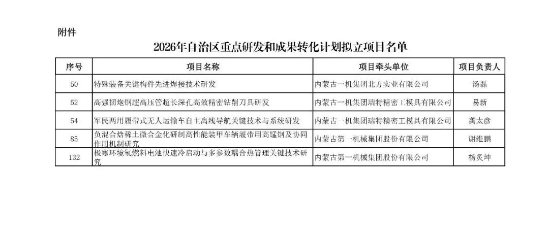 一机集团将紧扣国家战略需求,持续加大研发投入力度,完善创新平台与人才机制,深化产学研用协同创新机制,全力推动新工艺、新材料、新装备在国防与民品领域的快速落地,加速基础研究成果向工程化应用转化,打通从实验室到生产线的“最后一公里”,为高质量发展注入源源不断的强劲动能。