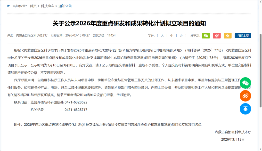 内蒙古自治区科技厅公布