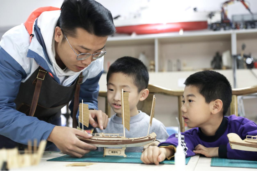 郝润泽说,这些小小的舰船模型,不只是作品,还是孩子们通往深蓝、了解人民海军的窗口,更是孩子们心中大国重器的模样。