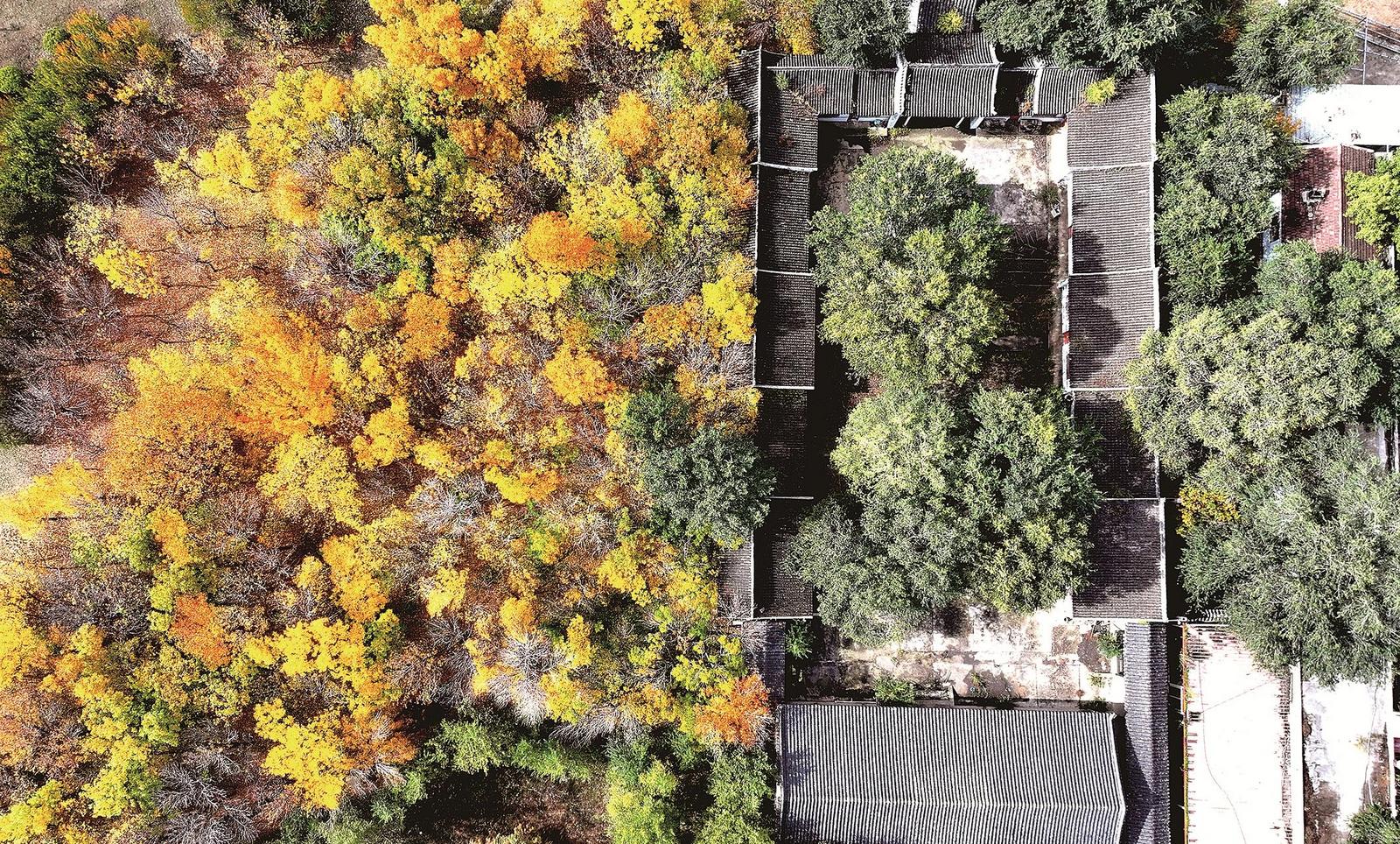 不远处,中式古阁静静矗立,银灰飞檐翘角叠错,红漆廊柱与门窗在秋林间格外醒目,古朴雅致。远处的都市建筑群若隐若现,与古阁、秋林、湖禽构成奇妙的和谐。游人沿着步道缓缓前行,脚下踩着松软的落叶,身旁是五彩树影与清澈湖水,身影被秋日阳光镀上温柔光晕,恍惚间,竟分不清是人走进了画里,还是画本身就藏在这秋日的公园里。