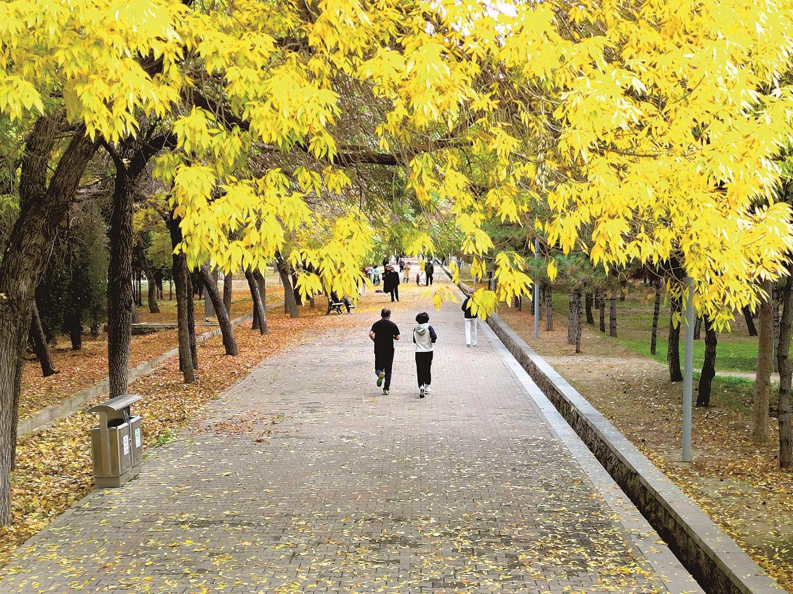 清晨的阿尔丁植物园如层林尽染的画卷,银杏大道是市民最爱打卡的“黄金走廊”,阳光透过银杏叶的扇形叶片,洒下满地碎金。五角枫也褪去翠绿,染上热烈的橙红,与金黄的白桦、深绿的油松相映成趣。晨练的老人牵着狗漫步,孩童在落叶堆里嬉戏,秋阳暖得正好,时光也慢了下来。