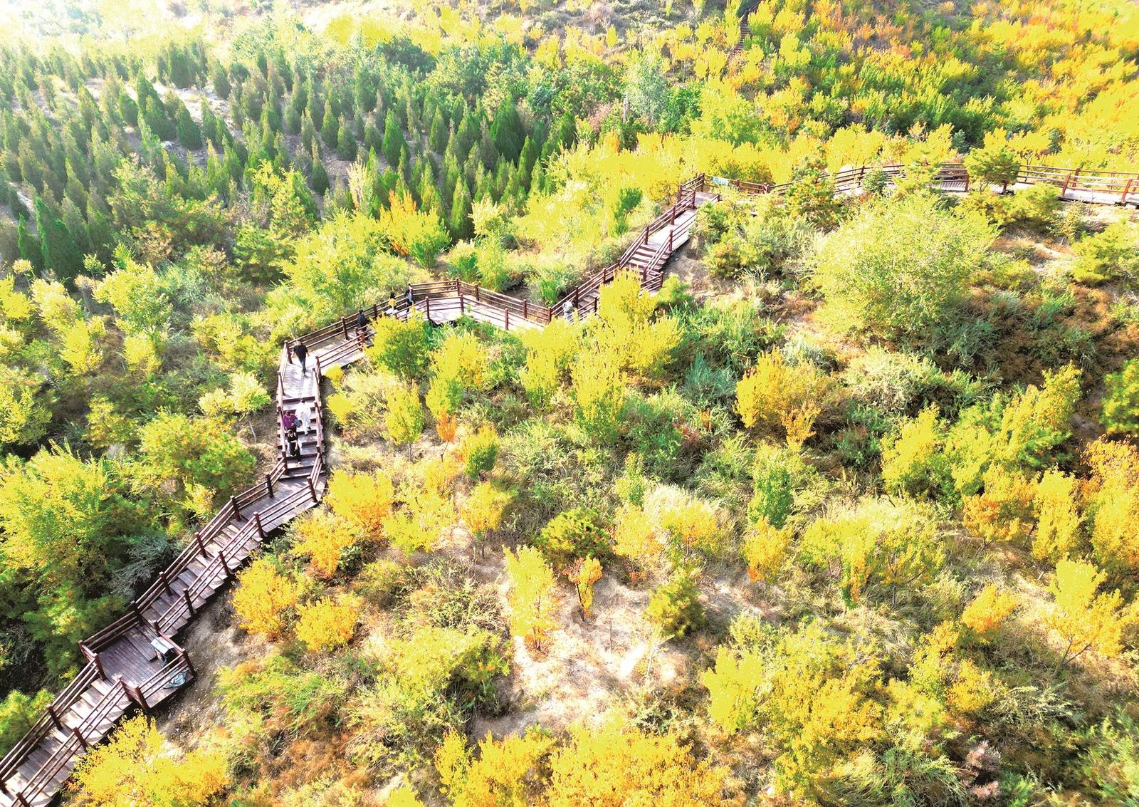 昆都仑河国家湿地公园栈道。