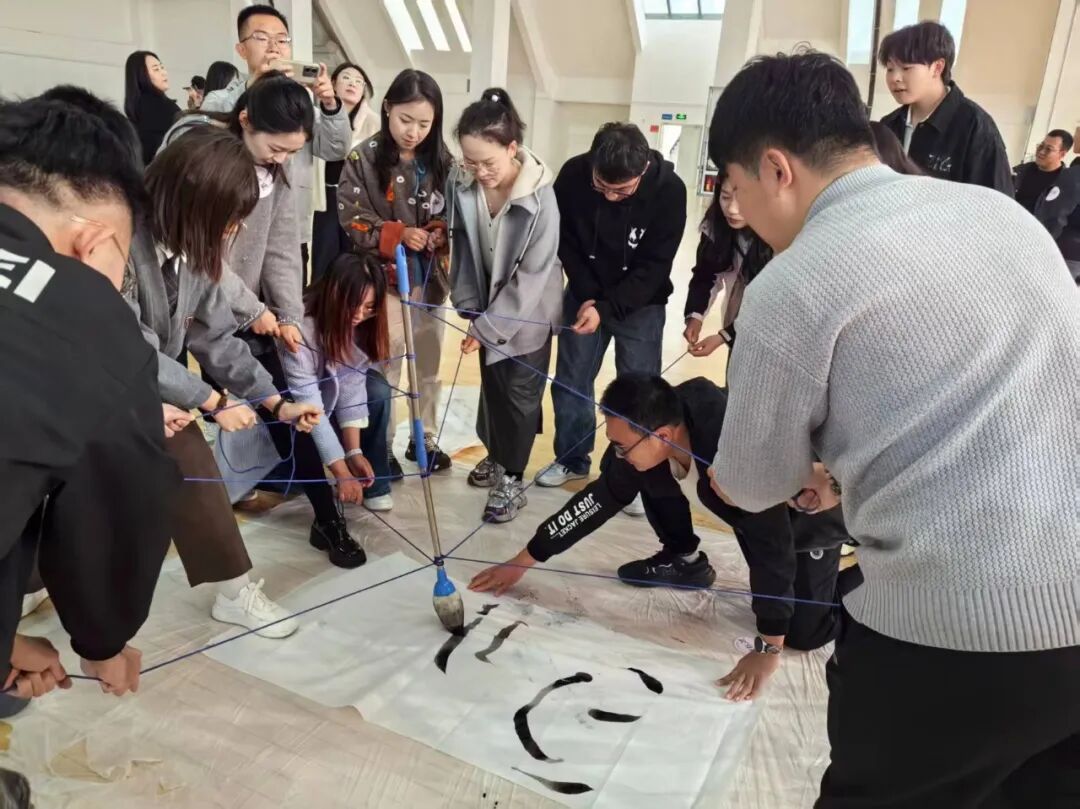 “一圈到底”团体游戏让大家的亲密度大幅提升,现场欢声笑语不断。“毛笔写字”游戏将整个活动的氛围推到了高潮,十几名青年劲往一处使,一起操控巨型毛笔在纸上写下“心动”二字。活动尾声,青年们主动交换了联系方式。这不仅为未来的进一步交流埋下了契机,更让这场温馨的交友活动多了一份美好期待。