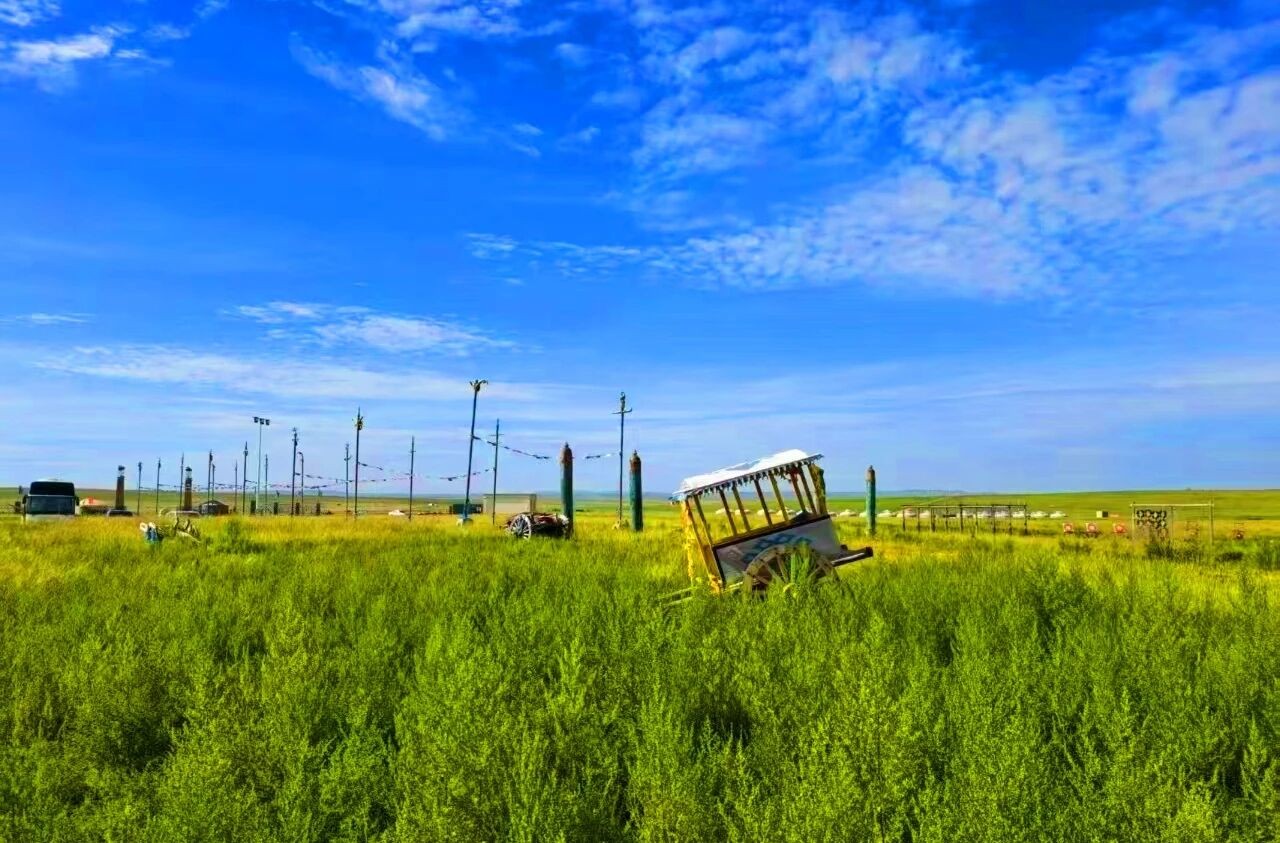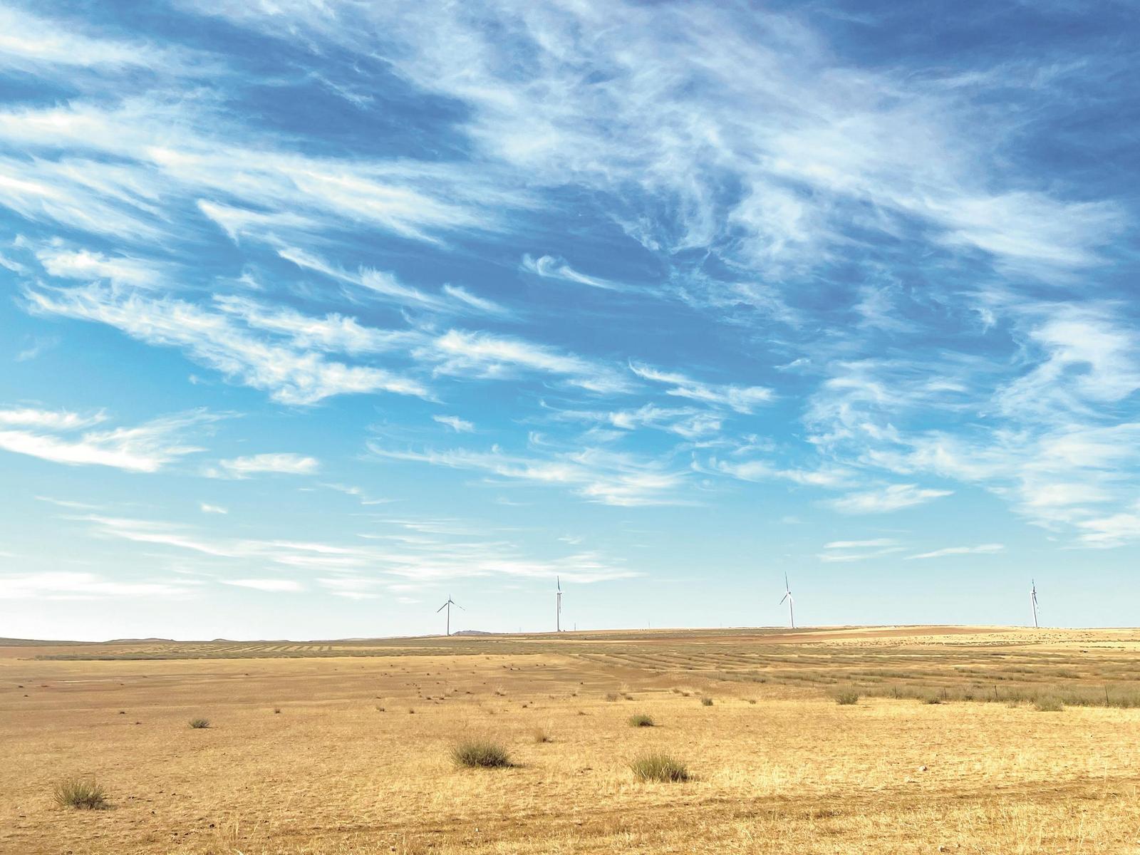 10月30日,达茂旗草原铺展成金色画卷。辽阔的旷野间,牧草裹着暖阳泛着柔光,成片的风力发电机叶片缓缓转动,勾勒出草原的别样风光。