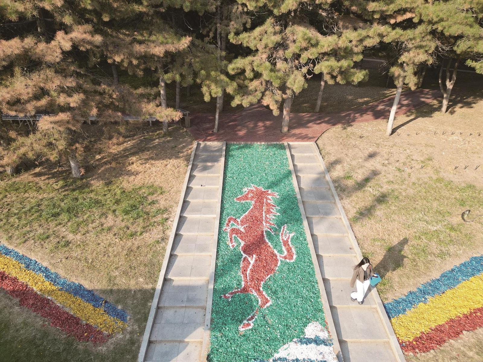 这“彩色地毯”就是由彩色有机覆盖物织就的“生态霓裳”。近年来,市园林绿化事业发展中心探索节约型园林建设,创造性地将枯枝落叶等“城市绿废”进行合理化利用,经技术加工“变废为宝”成五颜六色的“生态霓裳”。截至目前,全市已完成有机覆盖物铺设约8162平方米。一幅幅融合传统意蕴与现代审美的城市画卷,为凛冽萧索的冬季注入勃勃生机和融融暖意。接下来,我市更多的公园广场也将陆续铺设这种“美丽地毯”,让市民步履所至皆能感受生态之美。