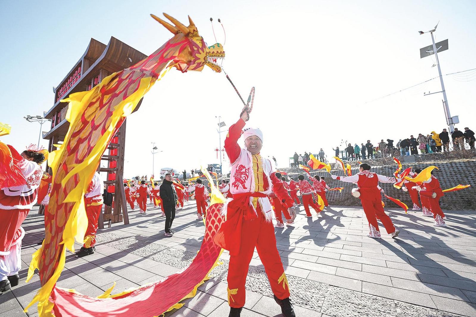 12月6日,“天下黄河第一村”迎来包头黄河观凌季,游人如织。河面之上,晶莹凌块随波涌动、碰撞作响,绘就冬日壮阔图景。岸边锣鼓铿锵,欢快的秧歌,翻飞腾跃的龙形空竹,民俗表演精彩纷呈。游客们赏流凌盛景、品特色美食,在传统文化与自然奇观的交融中,尽享欢乐周末时光。丰富多彩的民俗节目悦动黄河岸。