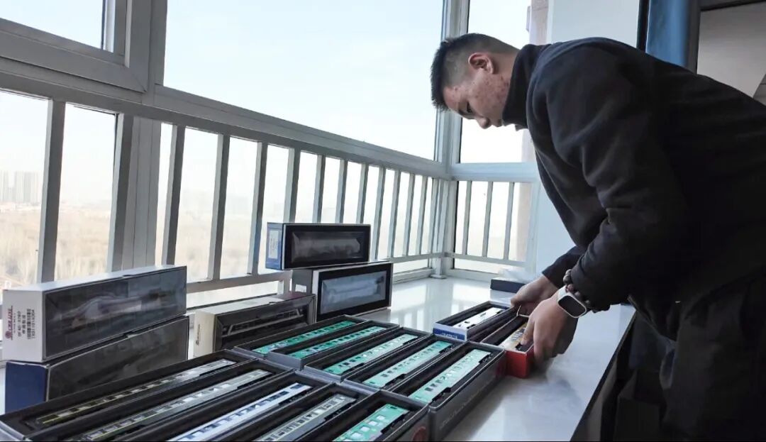 如果说旧票根记录过往,梁嘉航的火车模型则聚焦着高铁的“当下与未来”。出生在铁路职工家庭的他,七八岁就跟着父亲泡在火车站,如今作为铁路专业毕业生,对高铁技术的痴迷更甚。