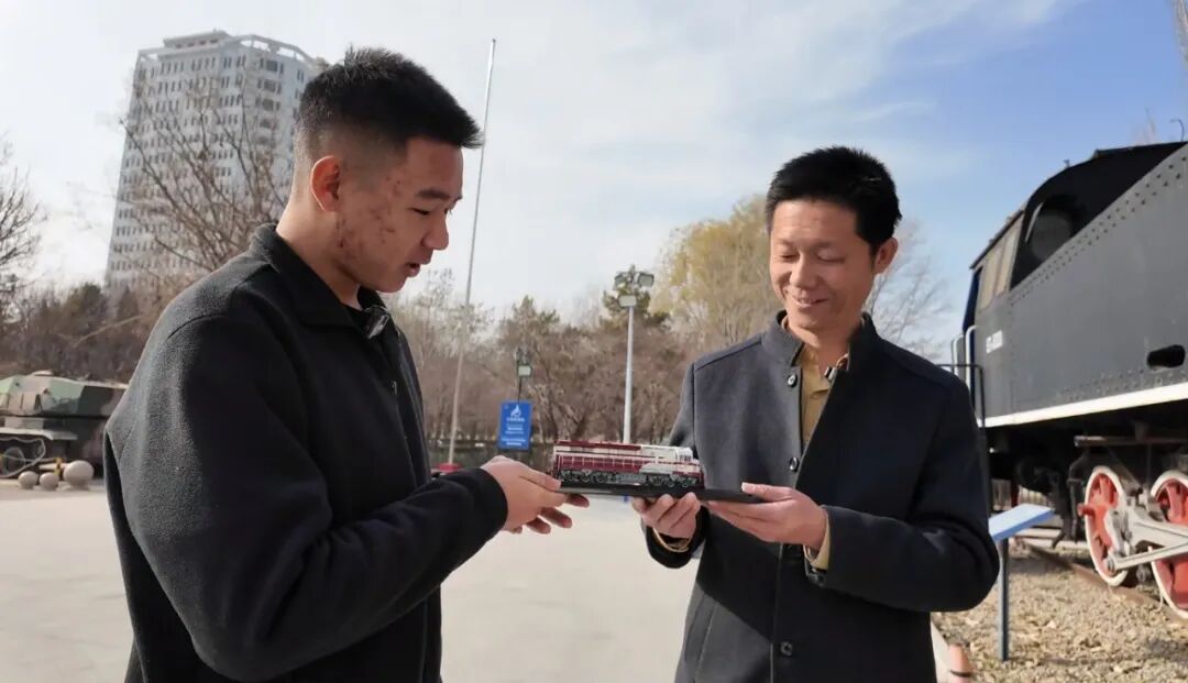 梁嘉航拿着高铁模型与机车头合影,镜头里定格下“传承与突破”:“老机车承载着一代人的记忆,新高铁则驶向更广阔的未来,这就是家乡铁路的魅力。”