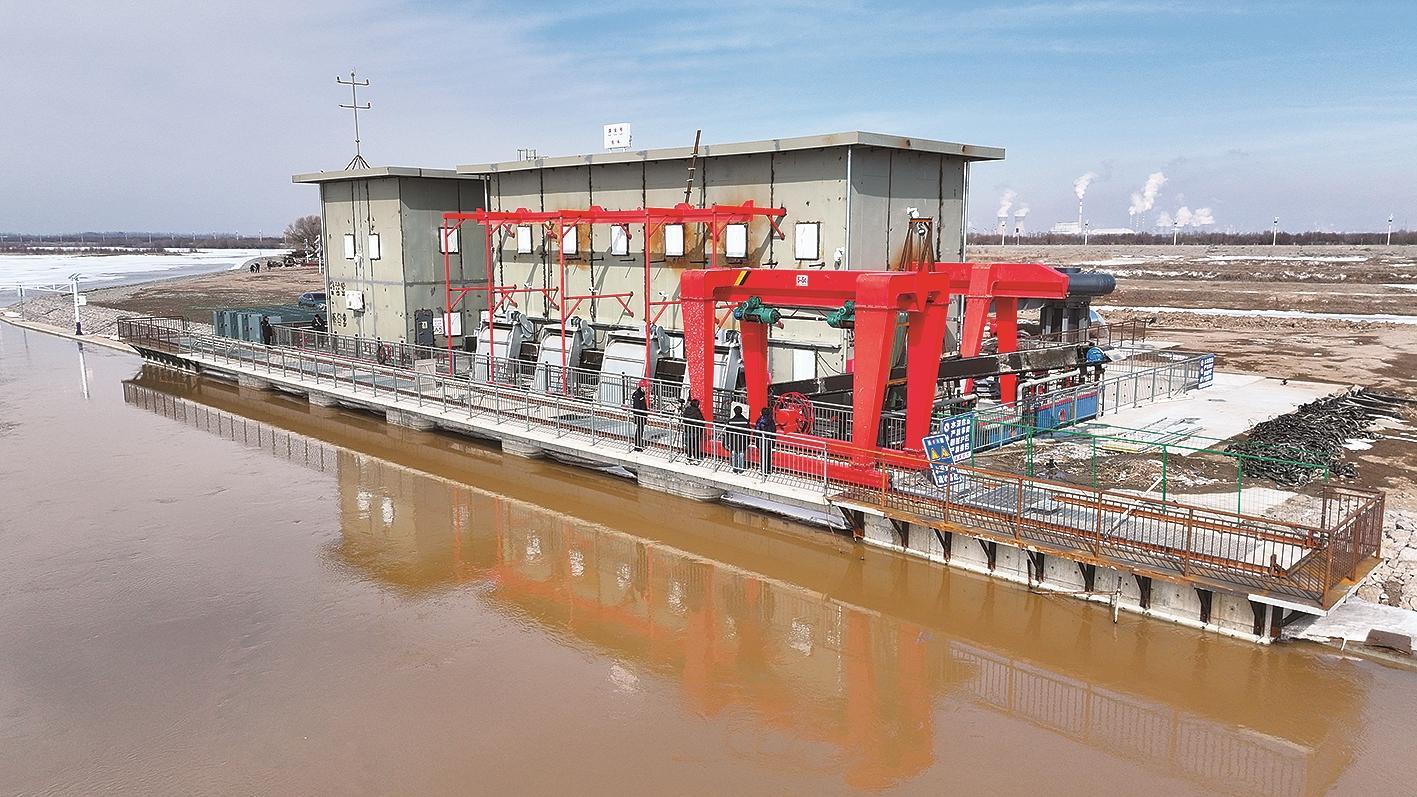 寒冬时节的黄河包头段,寒风凛冽却挡不住“滨云号”的澎湃动力。700吨重的巨型取水泵船稳稳锚定浮船码头,全智能化设备高速运转,黄河水经净化处理后,通过纵横交错的输水管网,源源不断输送至城市的千家万户、工厂车间。 作为“十四五”规划重点建设项目,这座填补北方严寒地区冬季取水空白的浮船码头,是包头供水保障能力的硬核彰显,也是构建现代化基础设施体系、推进基本公共服务均等化的生动实践。作为黄河流域的重要工业城市,稳定可靠的供水是城市经济发展的基石,关乎工业生产的稳定运行与城市生活的有序开展。