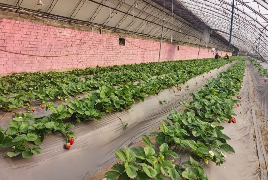 青山区青福镇色气湾村的草莓大棚。