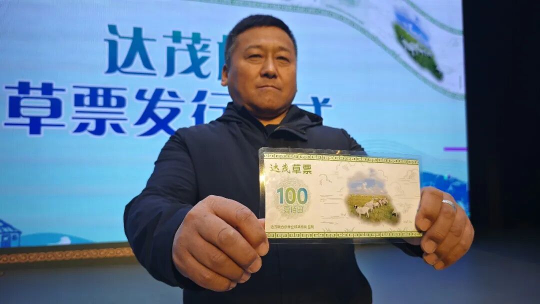 达茂旗牧民呼和拿到了全国首张“草票”。