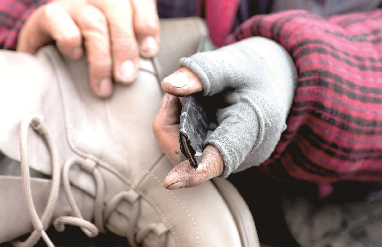 • 卖刀磨刀的大姐闲暇时跟着手机唱歌跳舞