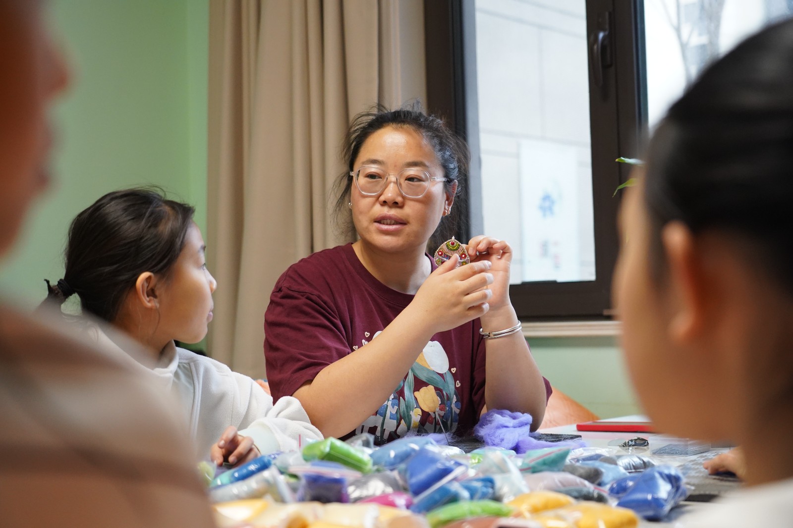 • 塔娜教孩子们制作蒙古包形状的胸针