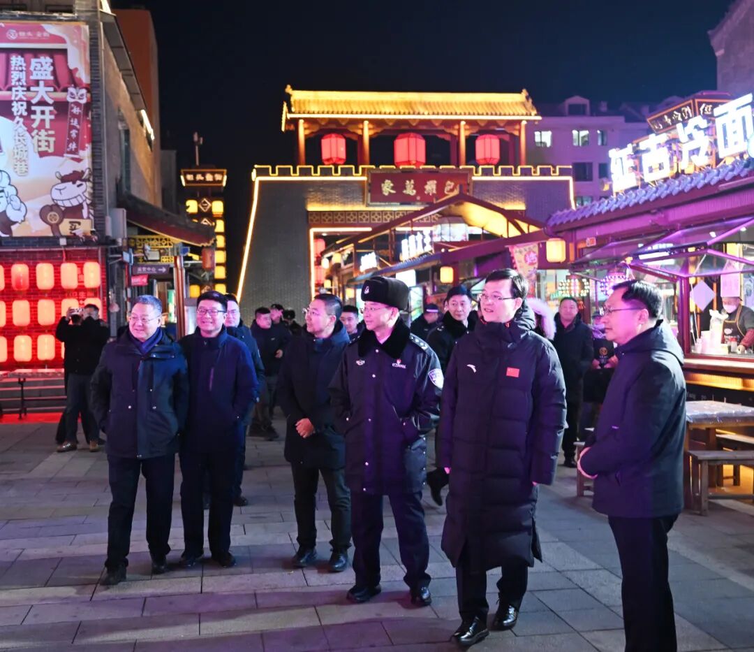 2月16日除夕夜,市委书记陈之常在包头金街调研检查春节期间人员密集场所安全保障工作。 记者 李强 摄