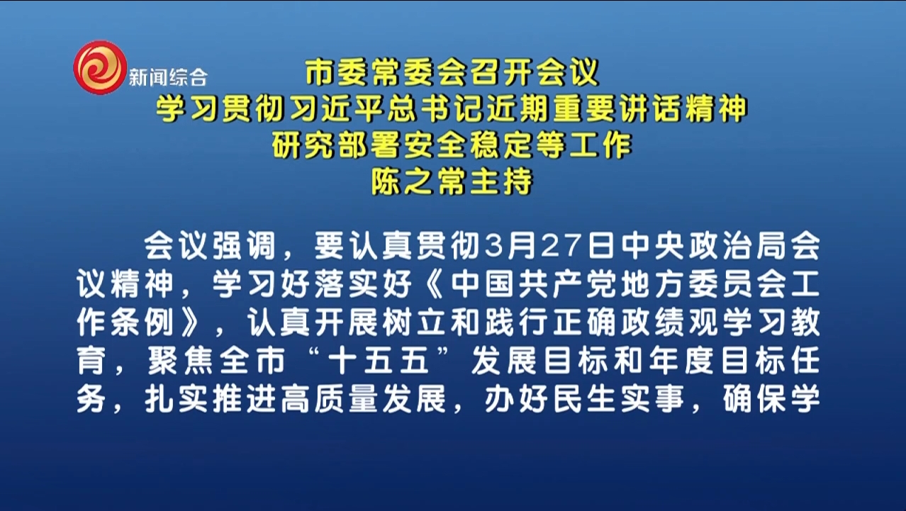 市委常委会召开会议 学习贯彻习近平总书记近期重要讲话精神 研究部署安全稳定等工作 陈之常主持