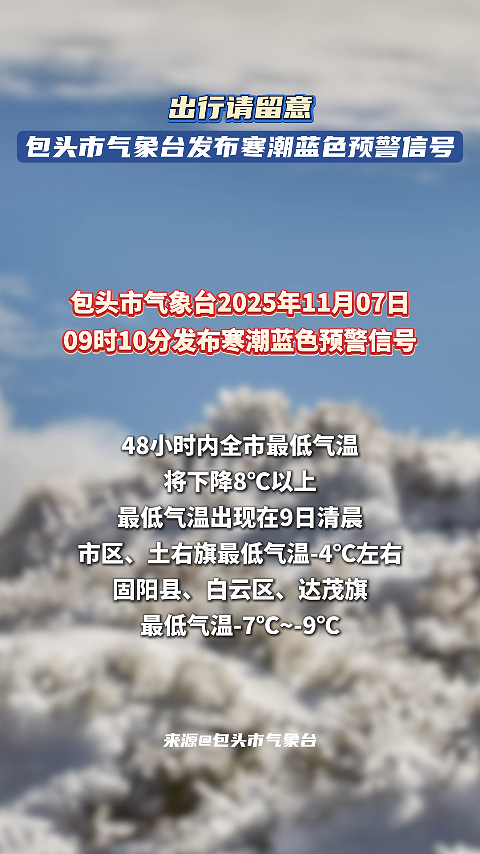 包头市气象台发布寒潮蓝色预警信号