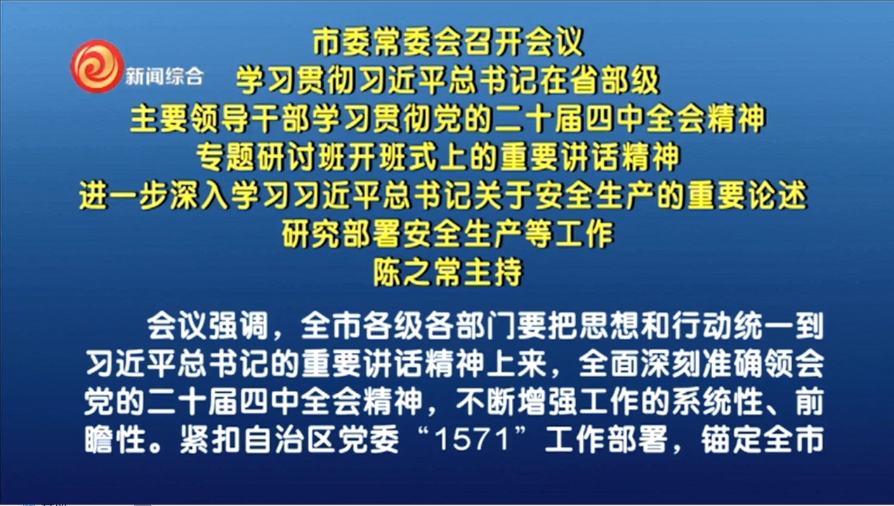 市委常委会召开会议 学习贯彻习近平总书记在省部级主要领导干部学习贯彻党的二十届四中全会精神专题研讨班开班式上的重要讲话精神 进一步深入学习习近平总书记关于安全生产的重要论述 研究部署安全生产等工作 陈之常主持